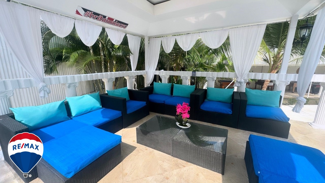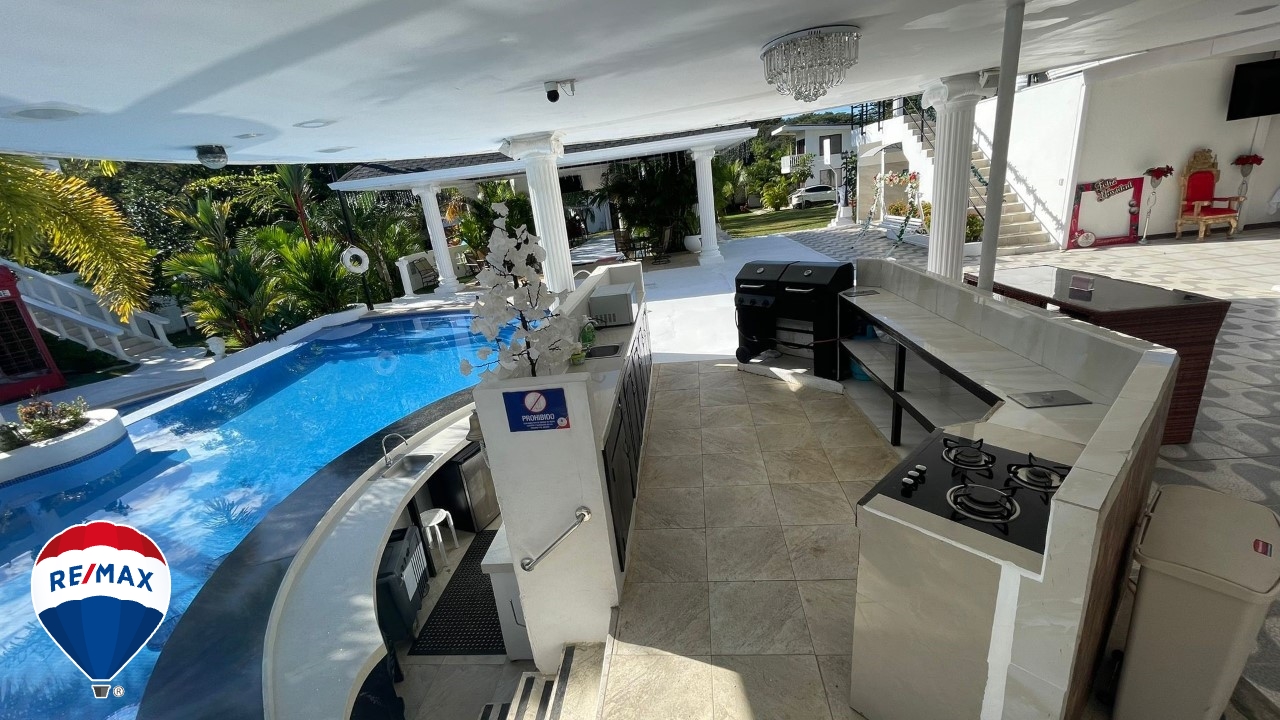 Además, la propiedad incluye una batería de baños para la piscina, con secciones independientes para hombres y mujeres, equipada con aire acondicionado de 24,000 BTU, lavabos dobles de granito y un diseño moderno que asegura comodidad para los huéspedes.