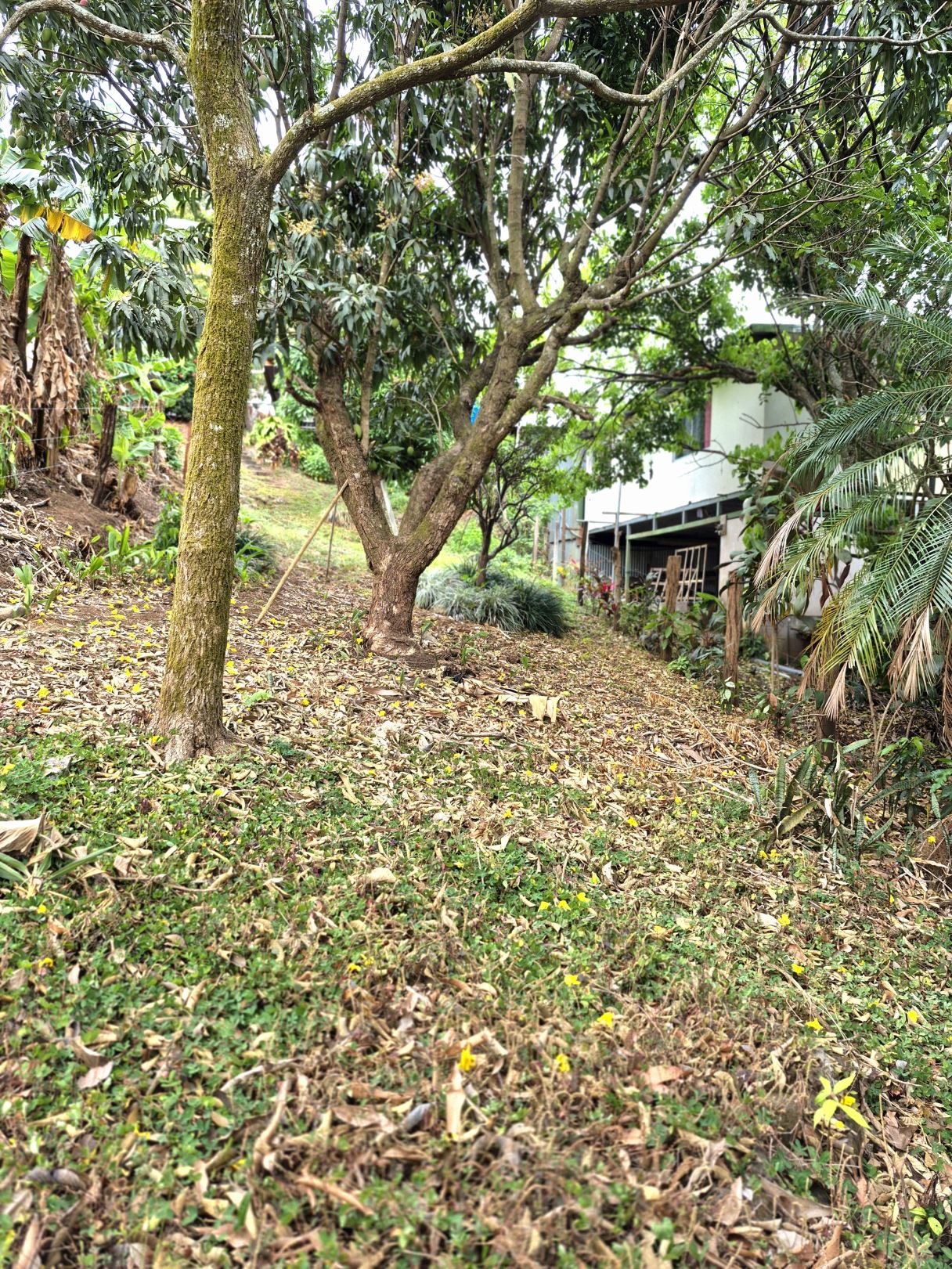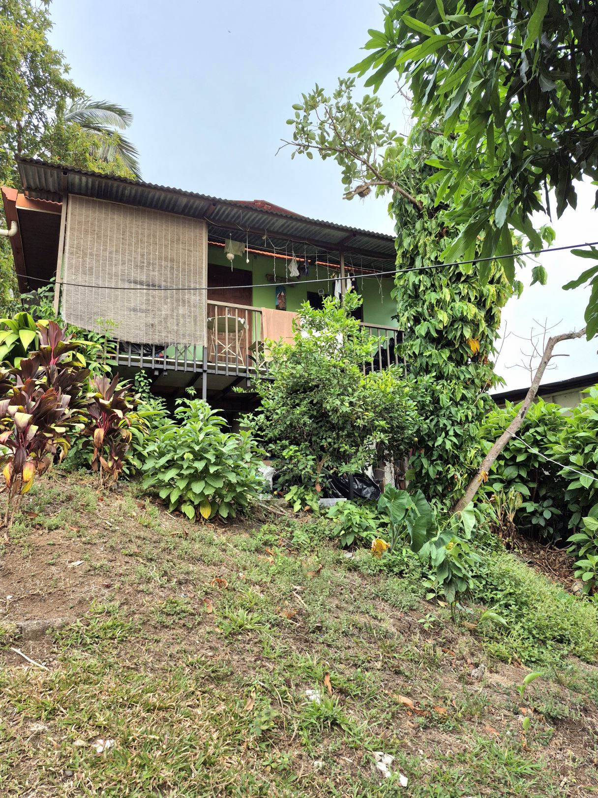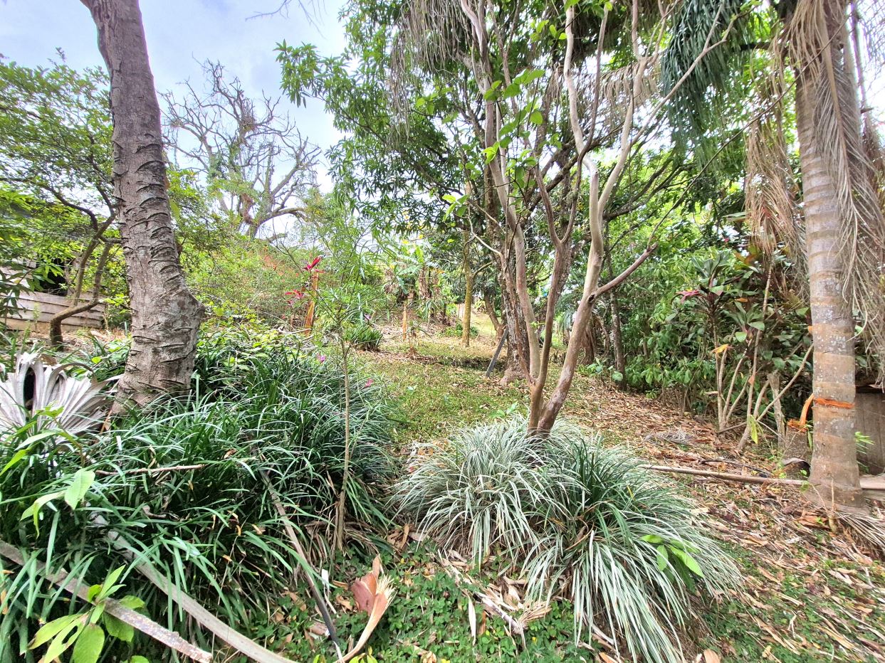 The property has a backyard with a green area where you can more plant fruit trees or plants and also has a nice view of the mountains.