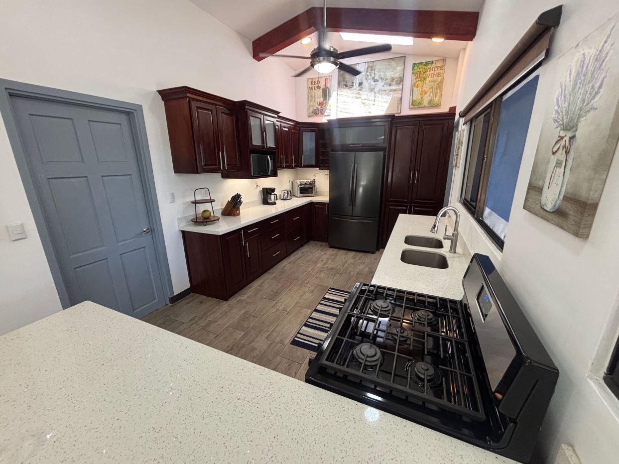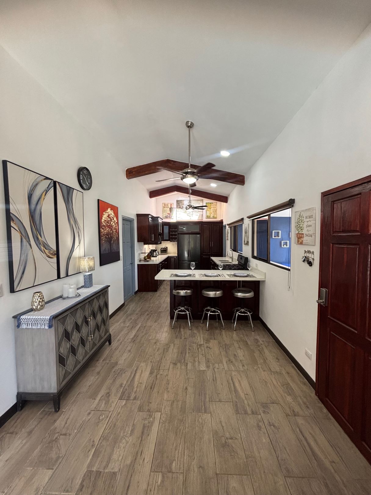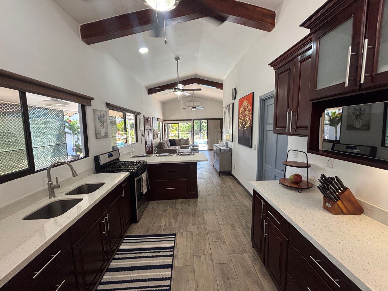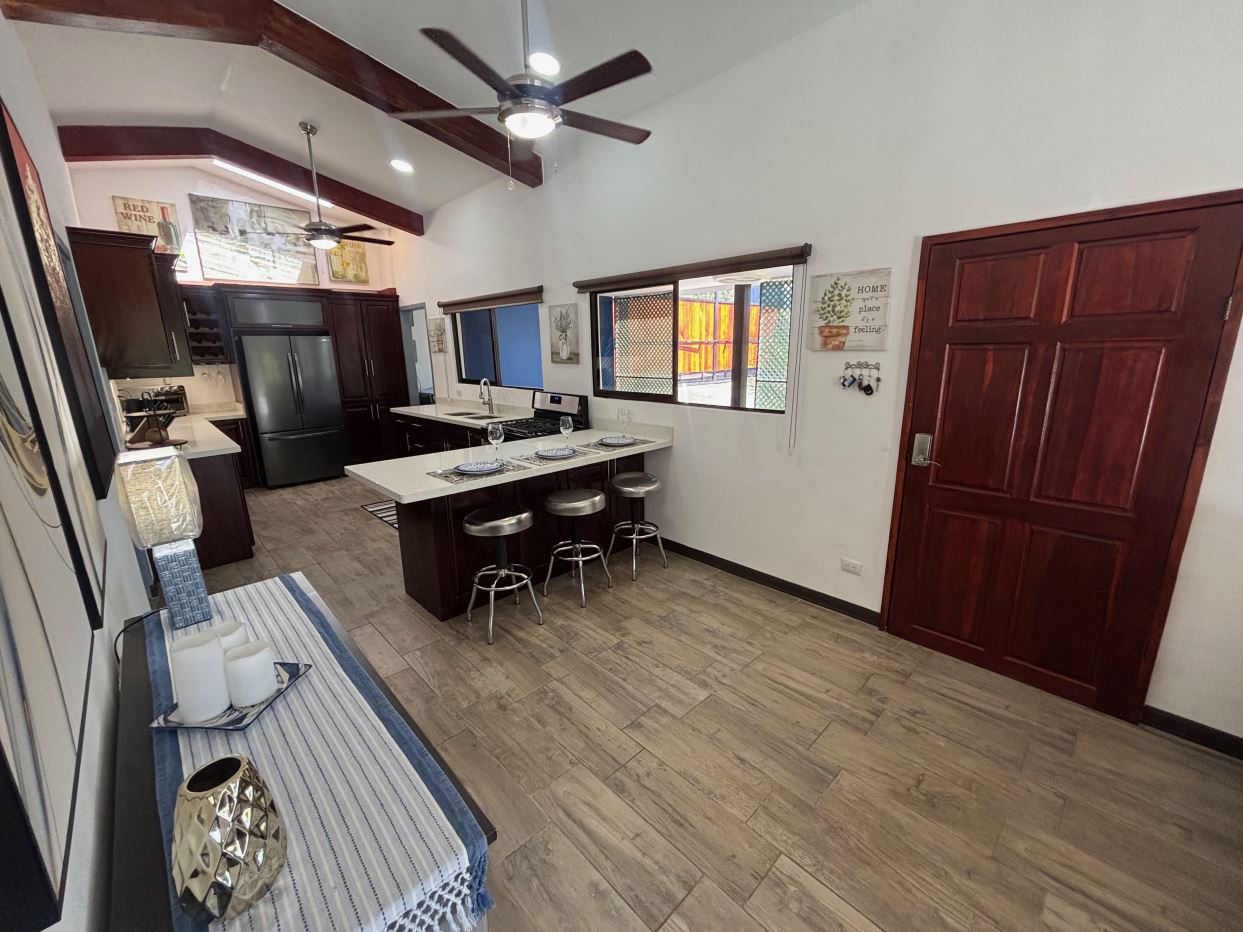Updated home with large pool and deck on 1000 sq meter lot at the end of a small road just 5 minutes from Atenas. Features a large modern kitchen with new cabinets and appliances. Lots of counter space with quartz countertops and a walk in pantry area. This home features hot water on demand, air conditioning and solar powered fans.